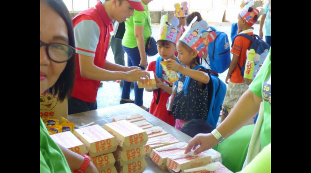 Cette action a consisté à offrir des fournitures scolaires, vêtements de pluie, chaussures à des enfants de Luzon.
