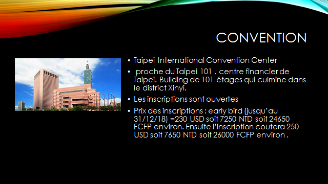 Les inscriptions pour participer à la convention ASPAC de Mars prochain à TAÏPEI sont désormais ouvertes.